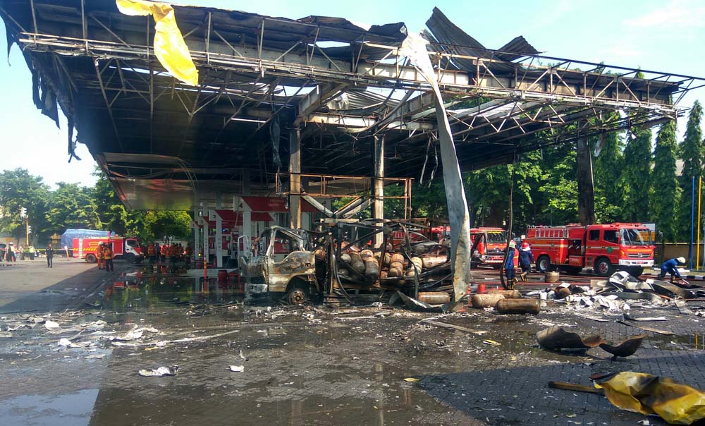 Dasyatnya insiden tersebut membuat bangunan SPBU rusak parah. Atap bangunan di rumah mesin pompa BBM rontok.