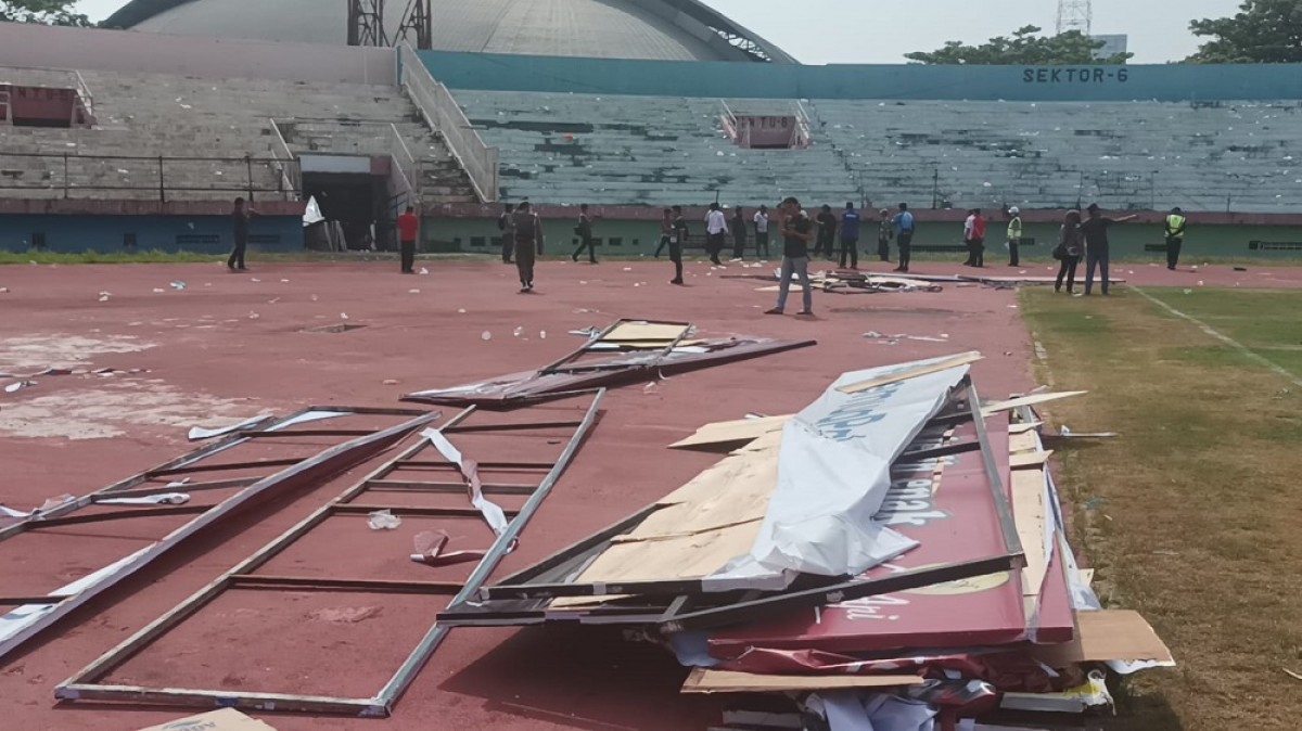 “Yang kita catat semua pagar tribun hampir 400 meter rusak semua. Pintu gerbang pagar B kisaran 20 meter rusak, ada sound system rusak, t-board juga rusak, ada mixer 16 channel dan 2 mic yang dikabarkan hilang,” imbuhnya.