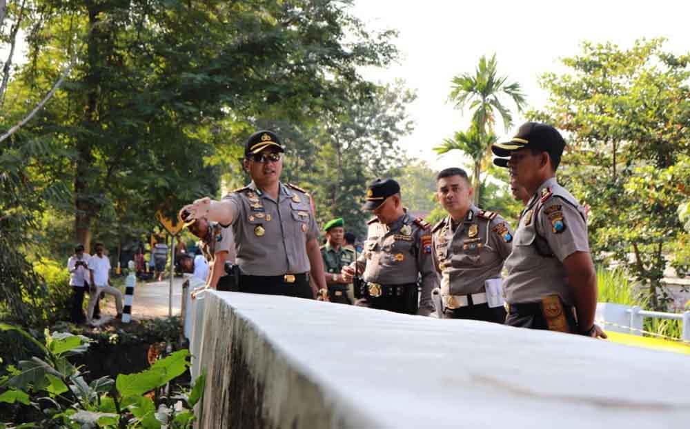 Sementara itu, petugas kepolisian melakukan penanganan sementara dengan menutup separoh jembatan menggunakan drum bekas.