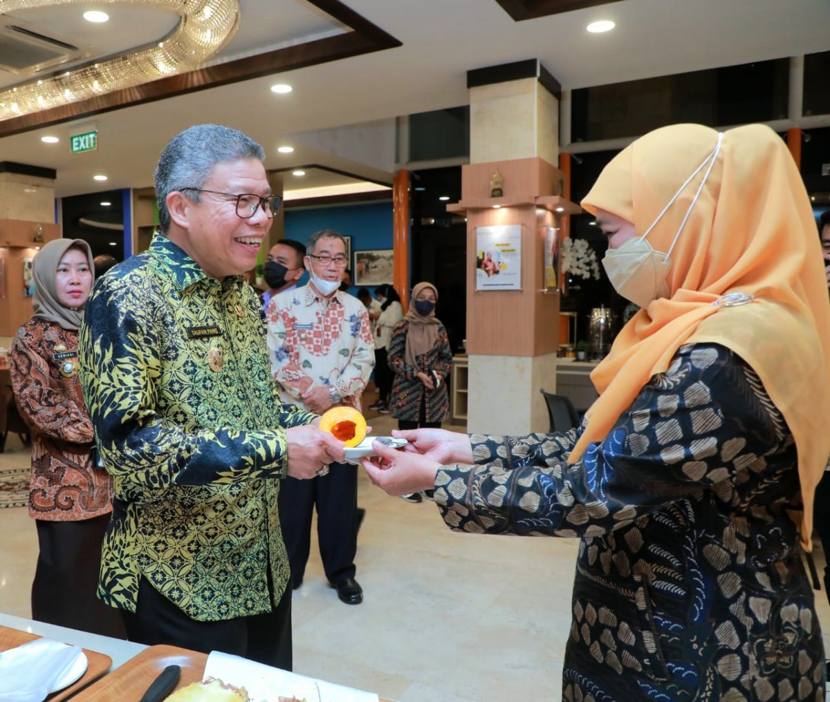 Dalam kesempatan itu Gubernur Khofifah juga menyempatkan diri menjamu ASN Pemkot Parepare untuk mencicipi mangga alpukat asal Bangil, kabupaten Pasuruan dan nanas PK-1 produk Kediri.
