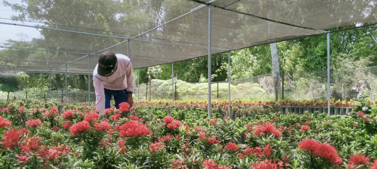 “Saya memilih bunga asoka, karena perawatannya mudah,” ucapnya.