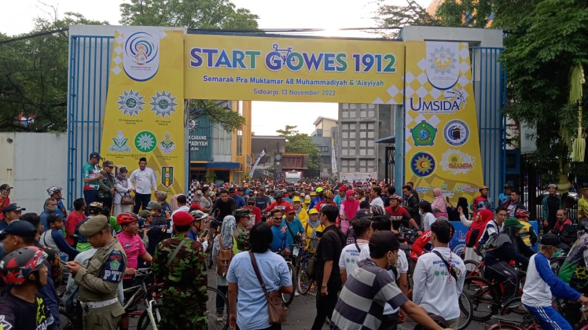 jatimnow.com - Kebermanfaatan untuk masyarakat menjadi pesan penting dalam gelaran Pra Muktamar ke-48 Muhammadiyah dan Aisyiyah. Gelaran pra muktamar di Sidoarjo, salah satunya diisi gowes bareng.