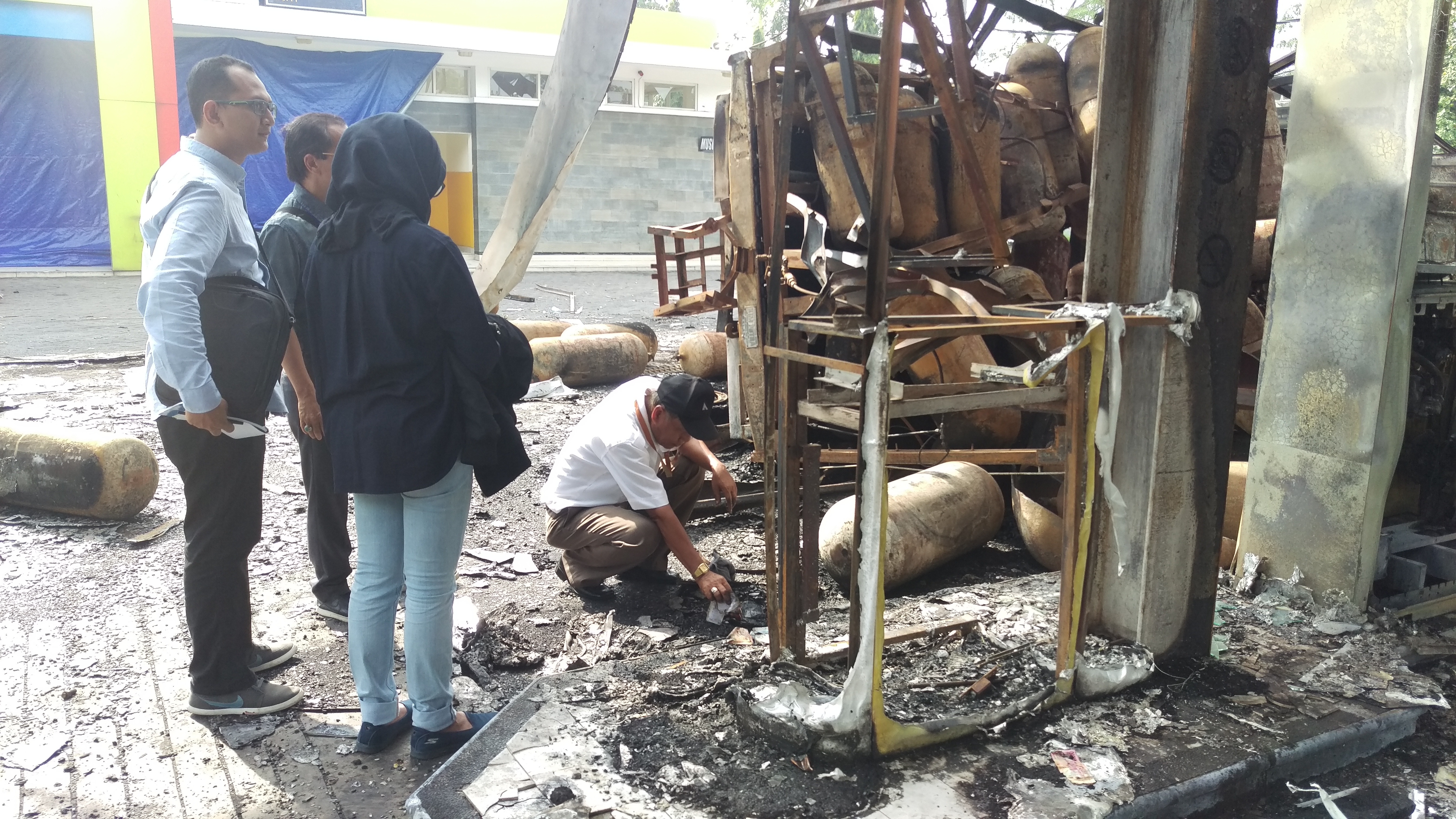 Sementara itu, masih terlihat beberapa pegawai SPBU membersihkan sisa-sisa pecahan kaca di sekitar tempat kejadian perkara (TKP).