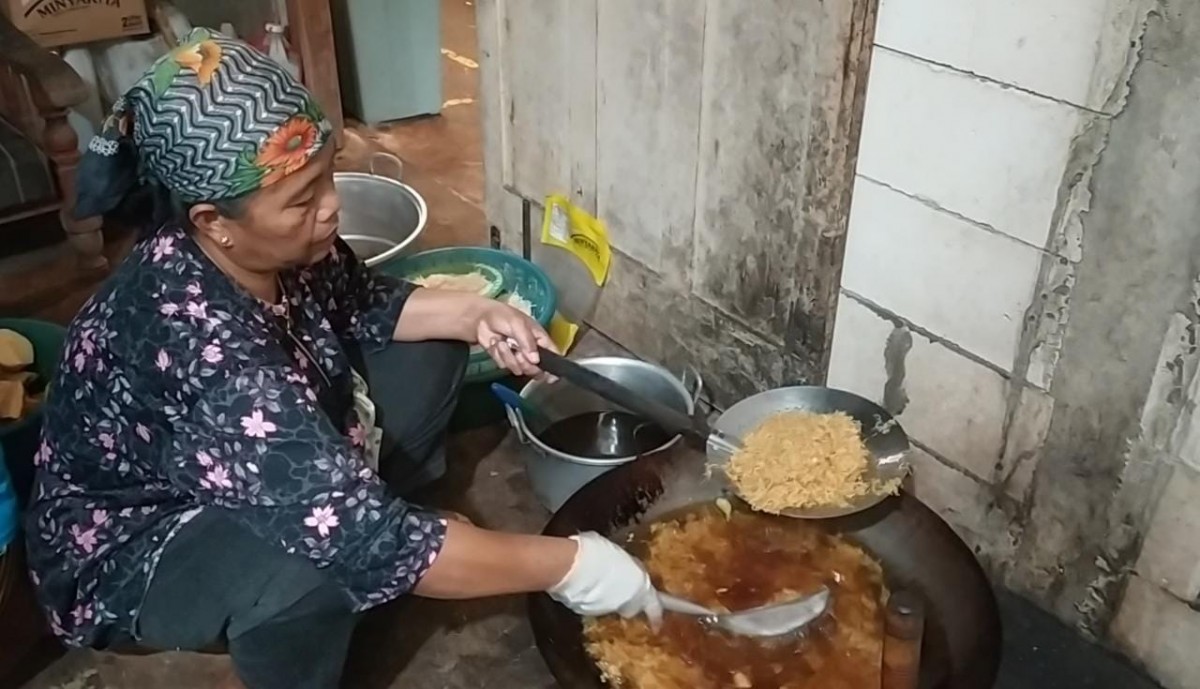 Untuk membuat cekeremes ini, ia mengaku dibantu dengan 4 orang karyawan. Mereka berbagi tugas, ada yang bertugas mengupas ubi, minggiling, memasak, dan melakukan pengemasan untuk dijual.