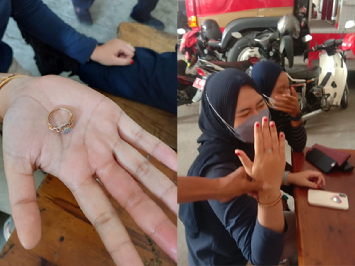 Petugas juga terlihat sedikit kesulitan saat mengevakuasi cnicin tersebut, lantaran ukuran tangan dan cicin jauh berbeda. Petugas yang menggunakan metode lilit benang akhirnya berhasil mengambil cincin tersebut.