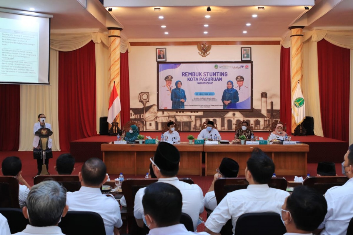 jatimnow.com - Pemerintah Kota (Pemkot) Pasuruan menggelar pertemuan Rembuk Stunting sebagai komitmen serius untuk terus melakukan upaya percepatan penurunan angka stunting di Kota Pasuruan, Rabu (7/12/2022).