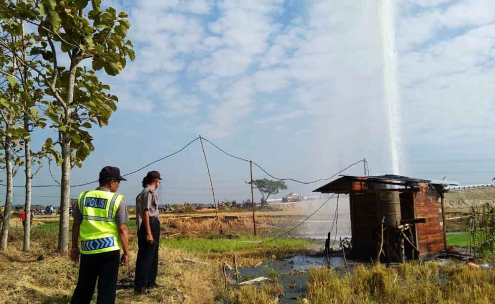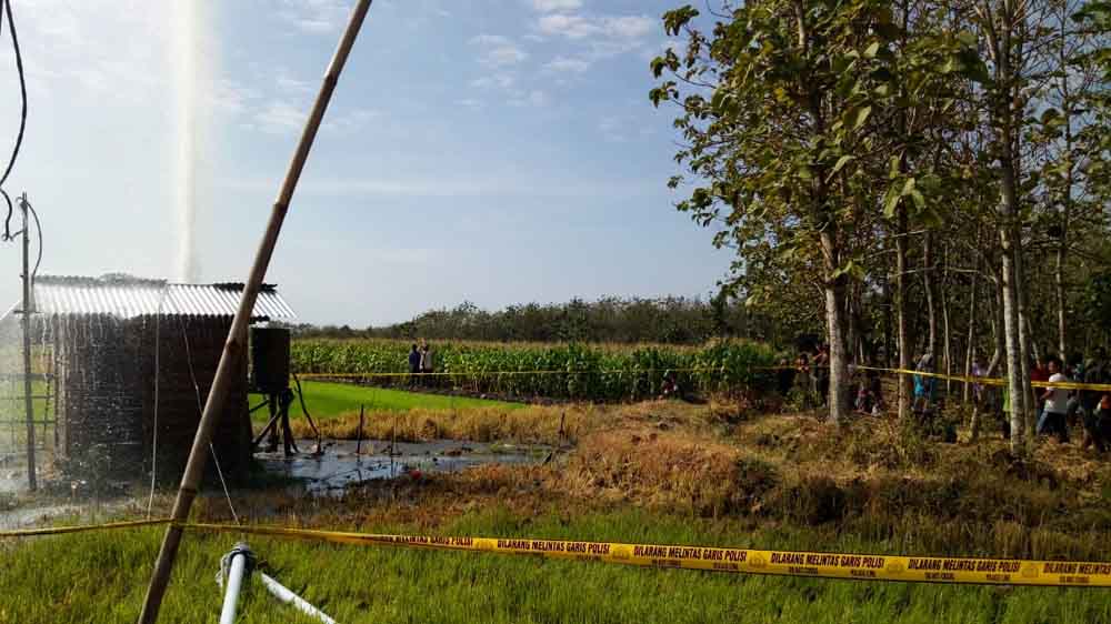 "Petugas meluncur ke lokasi karena ada laporan. Memang awalnya semburannya setinggi 30 meter. Tapi sekarang udah stabil 5-10 meter," kata Kasubag Humas Polres Ngawi, AKP Eko Setyo Martono.