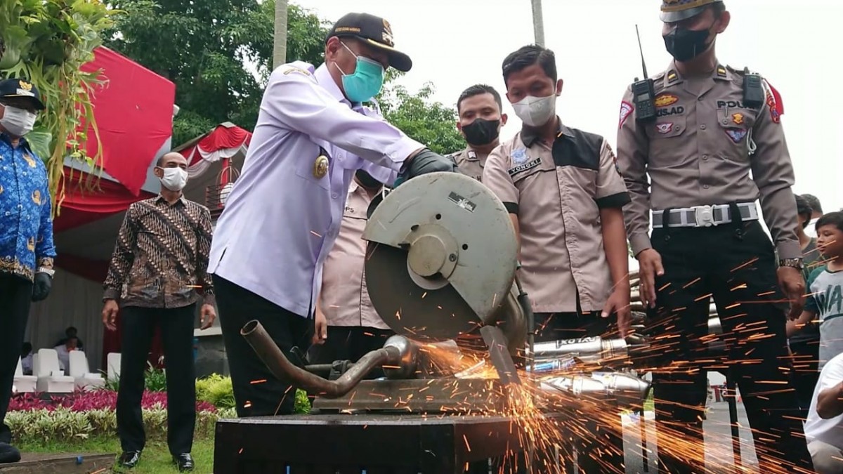 360 buah knalpot brong hasil dari operasi lalu lintas juga dimusnahkan. Knalpot ini kerap menimbulkan masalah dan warga banyak yang merasa terganggu dengan suara bising.