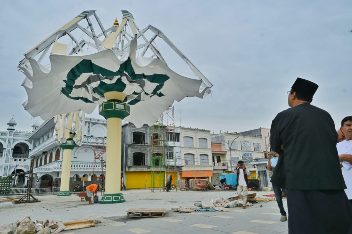 "Alhamdulillah saat ini hampir selesai pembangunan 6 payung. Akan disempurnakan di tahun depan," terang Gus Ipul saat meninjau pembangunan Payung Madinah di sekitar Alun-alun Kota Pasuruan, Jumat (30/12/2022).