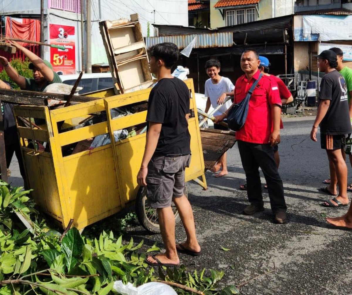 jatimnow.com - Kader-kader PDI Perjuangan Kecamatan Wonokromo, Kota Surabaya, melakukan kerja bakti bersama-sama warga perkampungan. Terutama ini untuk membersihkan sampah, saluran air, memotong ranting pohon dan lain-lain.