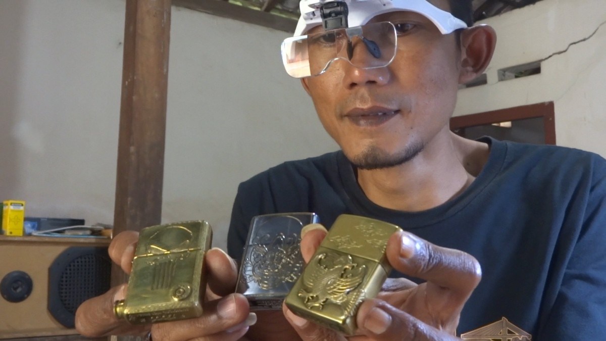 jatimnow.com - Joko Santoso warga Desa Ngranti, Kecamatan Boyolangu, Kabupaten Tulungagung ini menekuni seni engraving dengan media korek Zippo. Engraving merupakan seni ukir menggunakan media logam atau pelat besi.