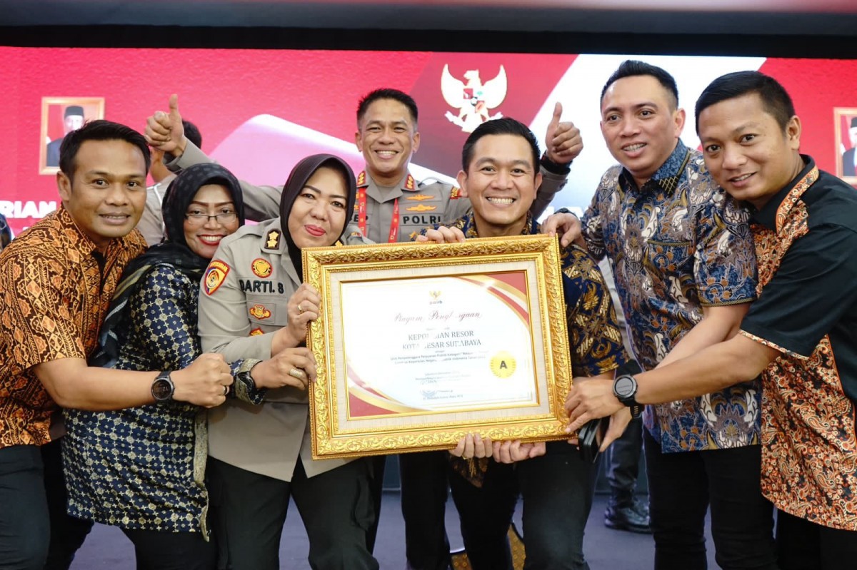 jatimnow.com - Polrestabes Surabaya kembali mendapatkan penghargaan pelayanan publik predikat prima dari Kementerian Pendayagunaan Aparatur Negara dan Reformasi Birokrasi (PAN-RB).