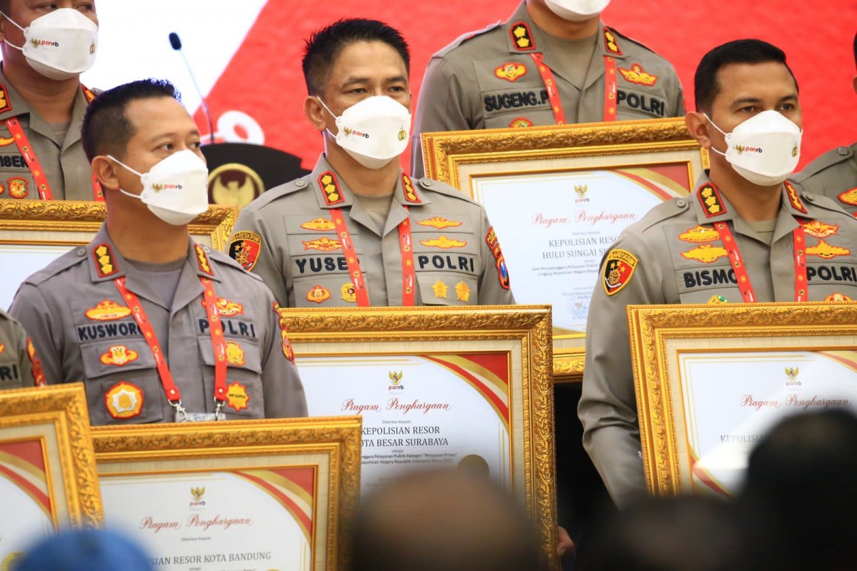 Penghargaan Kategori Pelayanan Prima Polres Hasil Pemantauan Evaluasi Kinerja Penyelenggaraan Pelayanan Publik (PEKPPP) Tahun 2022 itu diterima langsung oleh Kapolrestabes Surabaya Kombes Pol Akhmad Yusep Gunawan.