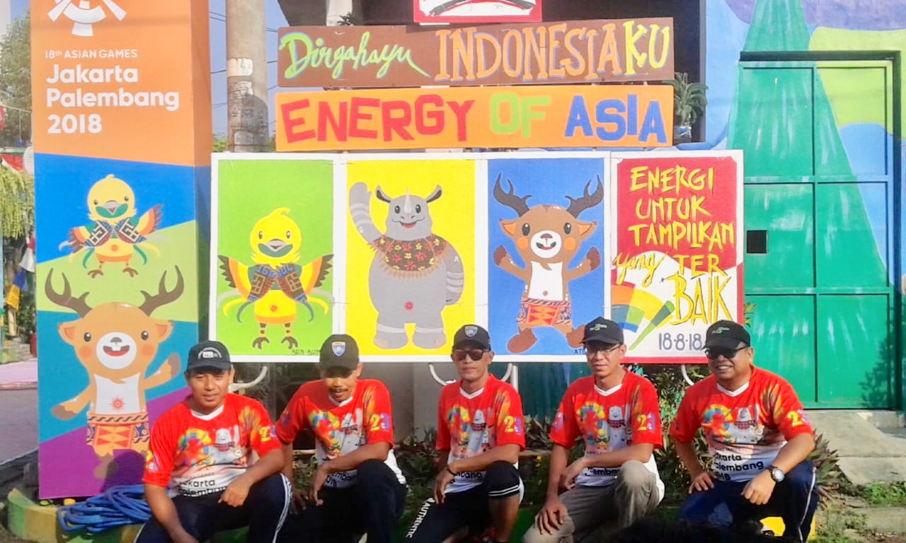 Mereka pun merogoh kocek sendiri untuk merenovasi dan menghias gapura dengan branding 73 tahun Indonesia Merdeka dan Asian Games 2018.