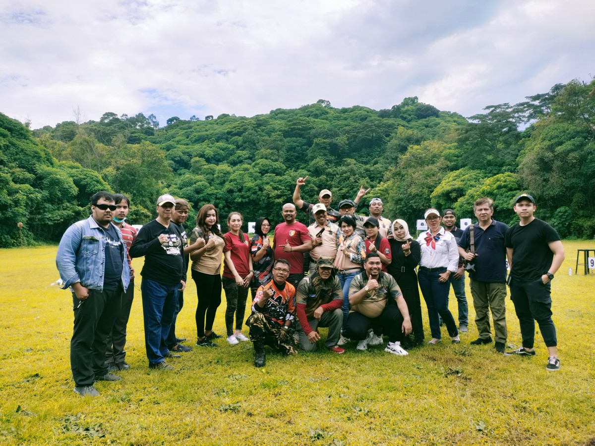 Keseruan dan saling canda ria usai olahraga menembak setelah melihat hasil tembakan peserta ada yang meleset maupun terkena sasaran pelat besi.