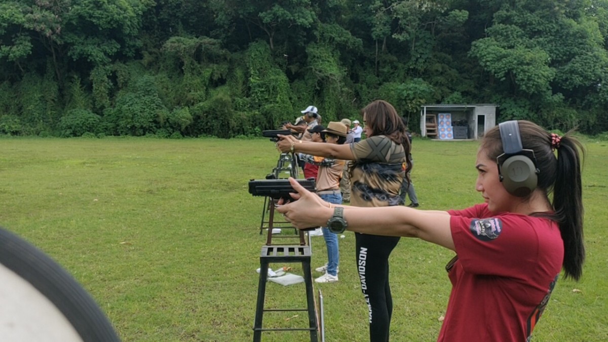 Meski baru pertama kali dan khawatir jari dan kukunya lecet saat mengisi amunisi ke dalam magasin, para srikandi Sakti ini terus semangat mengikuti arahan olahraga menembak dari para ahlinya, di lapangan tembak di Malang, Sabtu (25/2/2023).