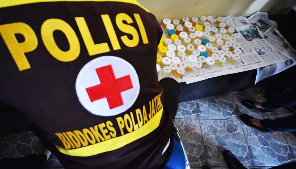 jatimnow.com - Ada pemandangan berbeda di halaman Polres Pelabuhan Tanjung Perak, Surabaya, Senin (13/8/2018) pagi. Mobil Biddokes (Bidang Kedokteran dan Kesehatan) Polda Jatim terparkir di markas kepolisian itu. 4 personilnya turun membawa perlengkapan dalam tas.
