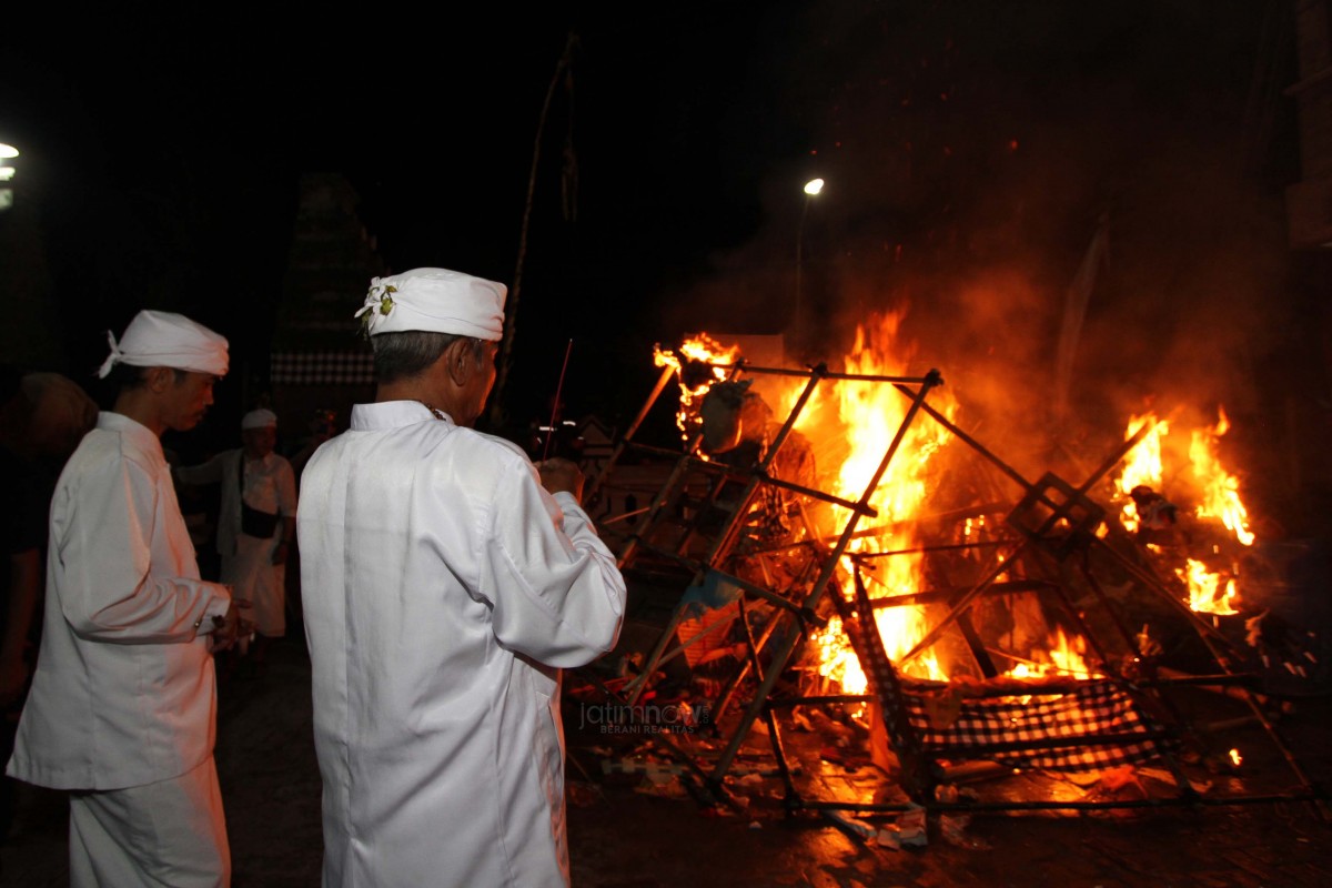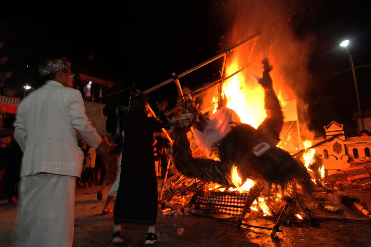 Di penghujung pawai, satu persatu ogoh-ogoh tersebut dibakar di halaman pura. Selanjutnya umat Hindu melakukan ritual catur brata penyepian sebagai rangkaian peringatan Hari Raya Nyepi 2023, Tahun Baru Saka 1945.