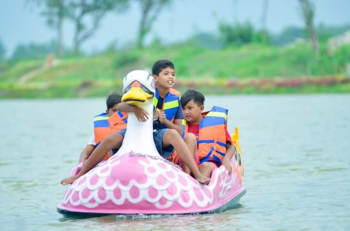 Di sini terdapat berbagai permainan air seperti bebek air, sepeda air, memberi makan ikan hias hingga bermain motor ATV. Selain itu, juga terdapat banyak lokasi spot foto cantik yang instagramable.