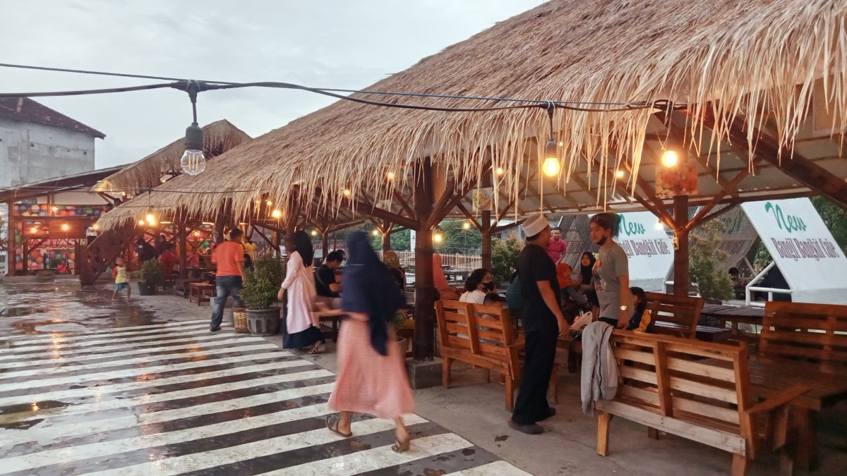 Kedua, bisa di meja kayu dengan dikelilingi lampu serta mengahdap live musik, tapi tidak beratap. Spot ketiga yaitu spot makan berkonsep klasik seperti gazebo dengan tiang bambunya.