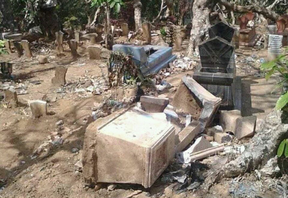 Tampak dibeberapa makam mengalami kerusakan di batu nisan, seperti akibat pukulan benda tumpul. Warga menduga makam sengaja dirusak saat malam hari.