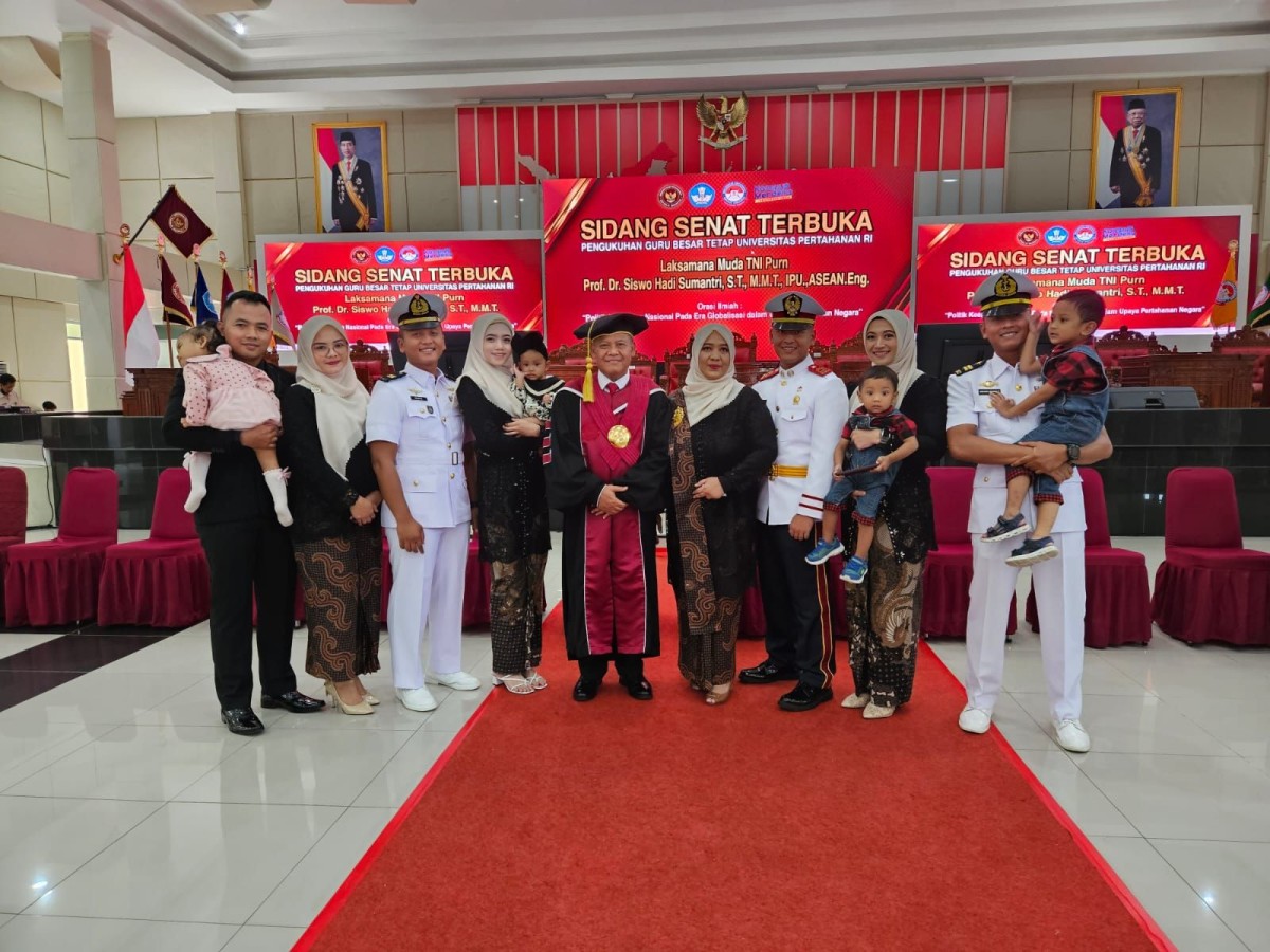 jatimnow.com - Wakil Rektor II Universitas Hang Tuah (UHT) Surabaya, Prof Siswo Hadi Sumantri dikukuhkan sebagai guru besar (gubes) Ilmu Pertahanan Bidang Kebijakan Lingkungan Pertahanan Pasca Sarjana Universitas Pertahanan RI.