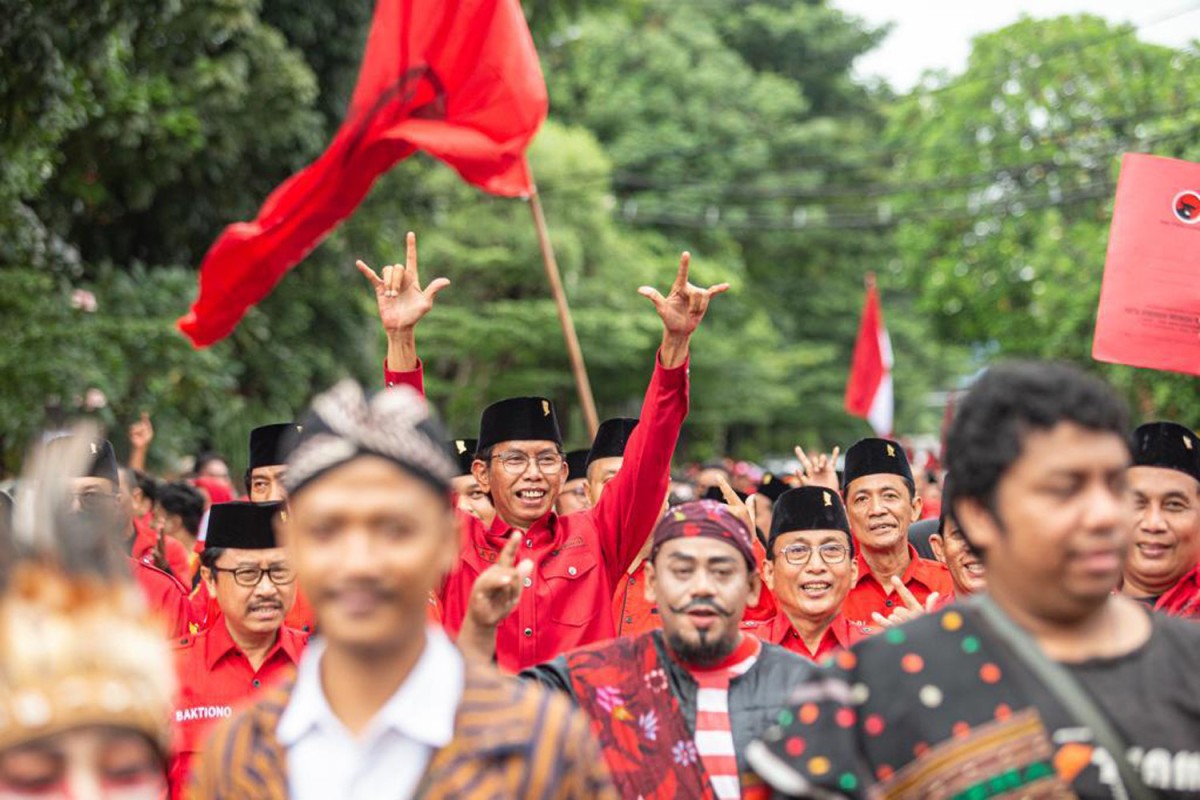 Sepanjang jalan diwarnai pawai budaya diikuti rombongan kader banteng yang mengular. Disertai kibaran bendera merah putih dan bendera PDIP banteng moncong putih nomor 3, perjalanan kaki itu semakin meriah. Menjadi tontonan bagi warga masyarakat.