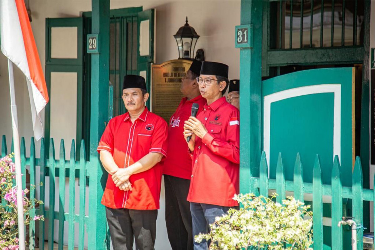 jatimnow.com - Kader-kader PDI Perjuangan (PDIP) Kota Yogyakarta berkunjung ke rumah kelahiran Bung Karno Jalan Pandean Gang 4 No. 40, Kelurahan Peneleh, Kota Surabaya.