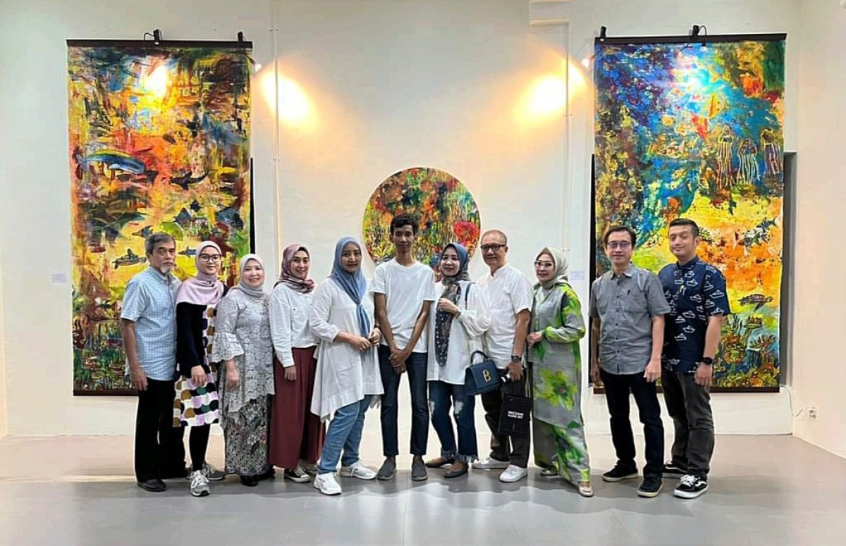 jatimnow.com - Seniman muda asal Surabaya Ariel Ramadhan (23) menggelar pameran tunggal bertajuk Lautan Kreasi di Kalcer Social Space Jl. Sulawesi No.1 Surabaya. Dalam pameran tunggalnya yang keempat ini, Ariel memajang 24 karya lukis berbagai ukuran sejak tanggal 20 Mei hingga 31 Mei 2023.