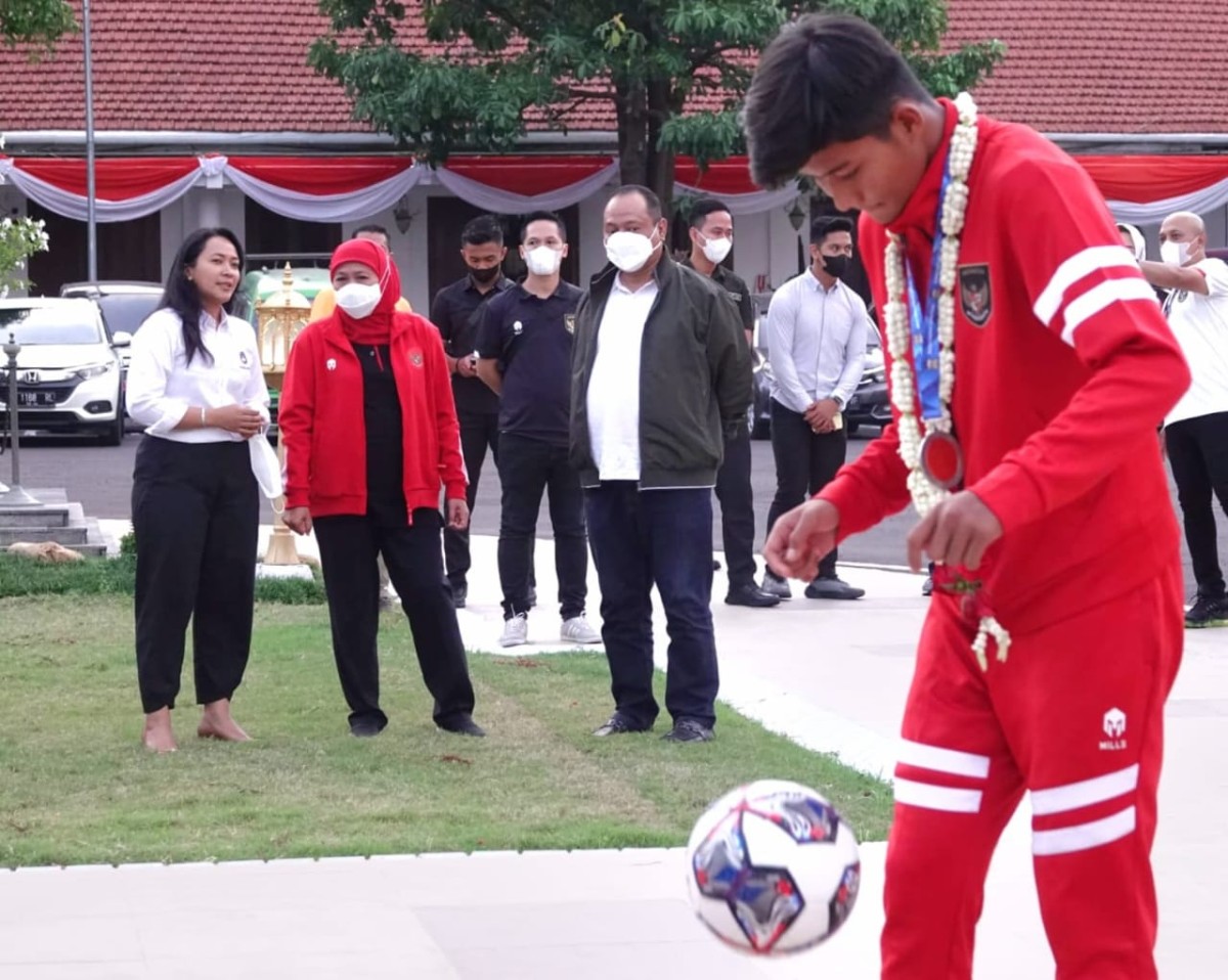 Secara khusus Khofifah menyampaikan pada pemain Palestina untuk menikmati semua keunggulan yang dimiliki Provinsi Jawa Timur. Mulai pariwisatanya hingga kulinernya.