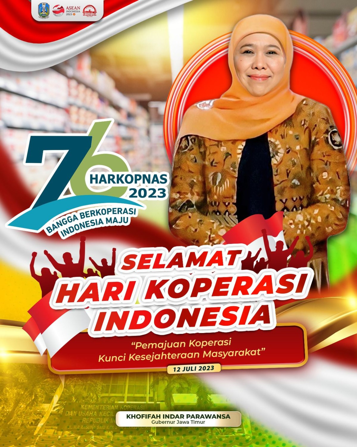 Hal itu ditekankan Gubernur Khofifah bertepatan dengan Peringatan Hari Koperasi Nasional ke-76 yang jatuh hari ini, Rabu (12/7/2023).