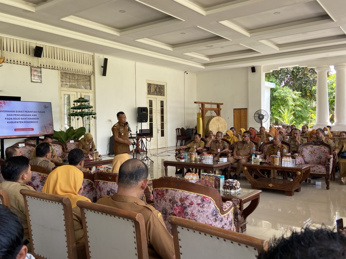 jatimnow.com - Sebanyak 64 tenaga kesehatan (Nakes) di Ponorogo menerima surat perintah tugas dari Bupati Ponorogo Sugiri Sancoko, Senin (9/10/2023).