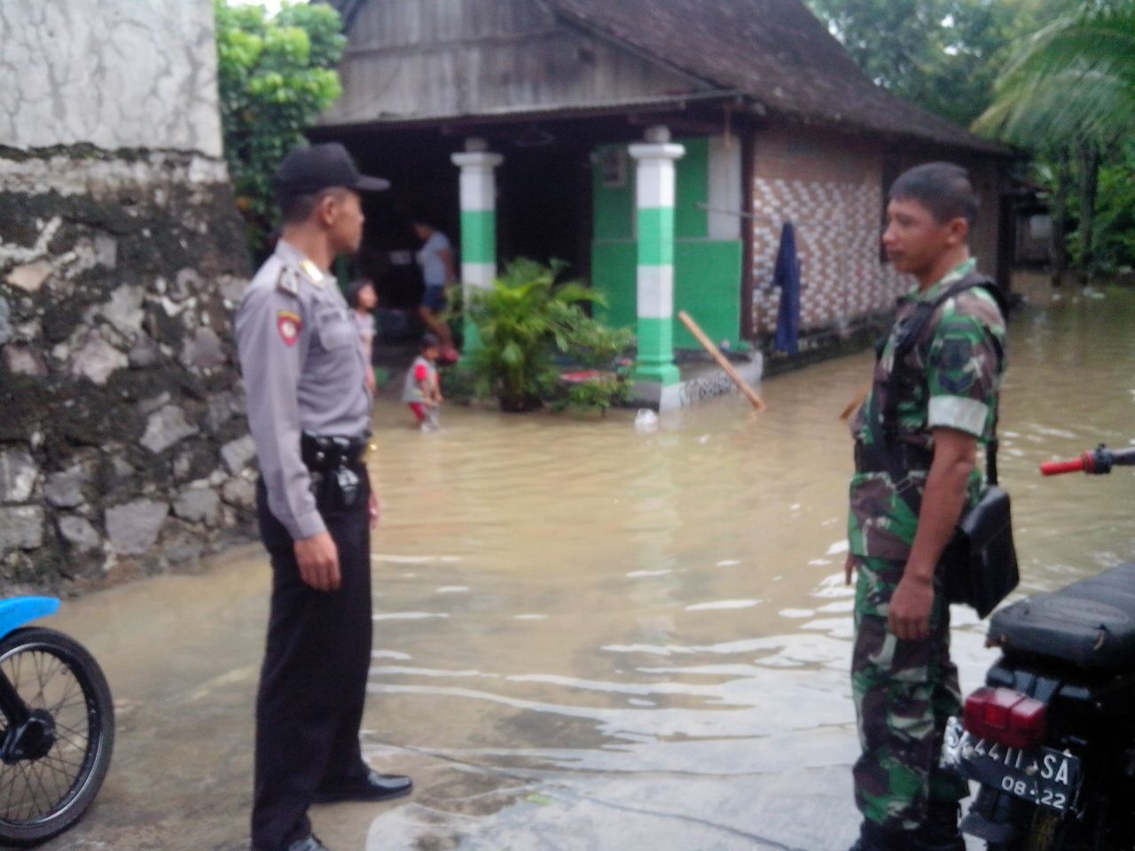 "Cuaca di Wilayah Ngawi saat ini mendung berawan. Hingga saat ini luapan air sungai Madiun dan Bengawan Solo yang menggenangi pemukiman terus mengalami kenaikan," tambahnya.
