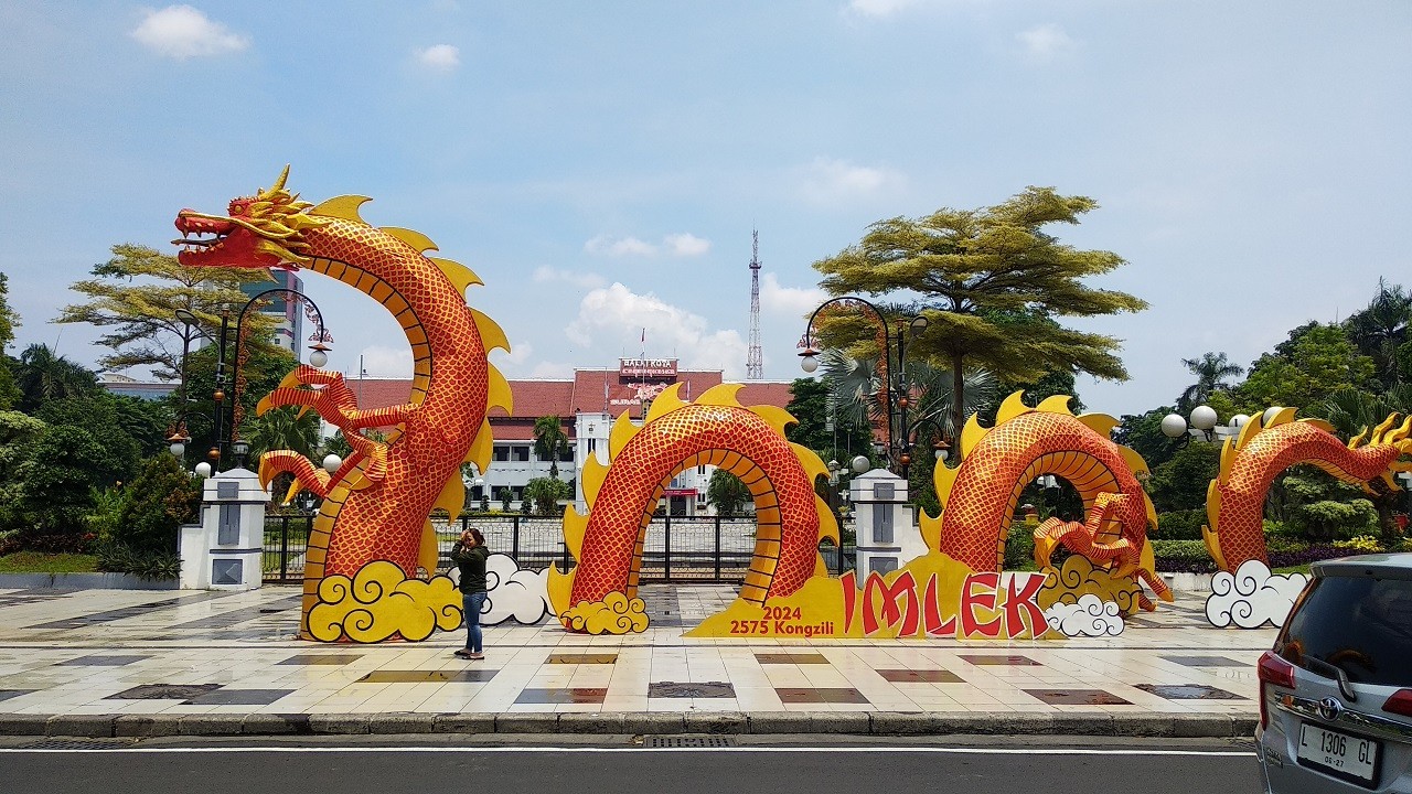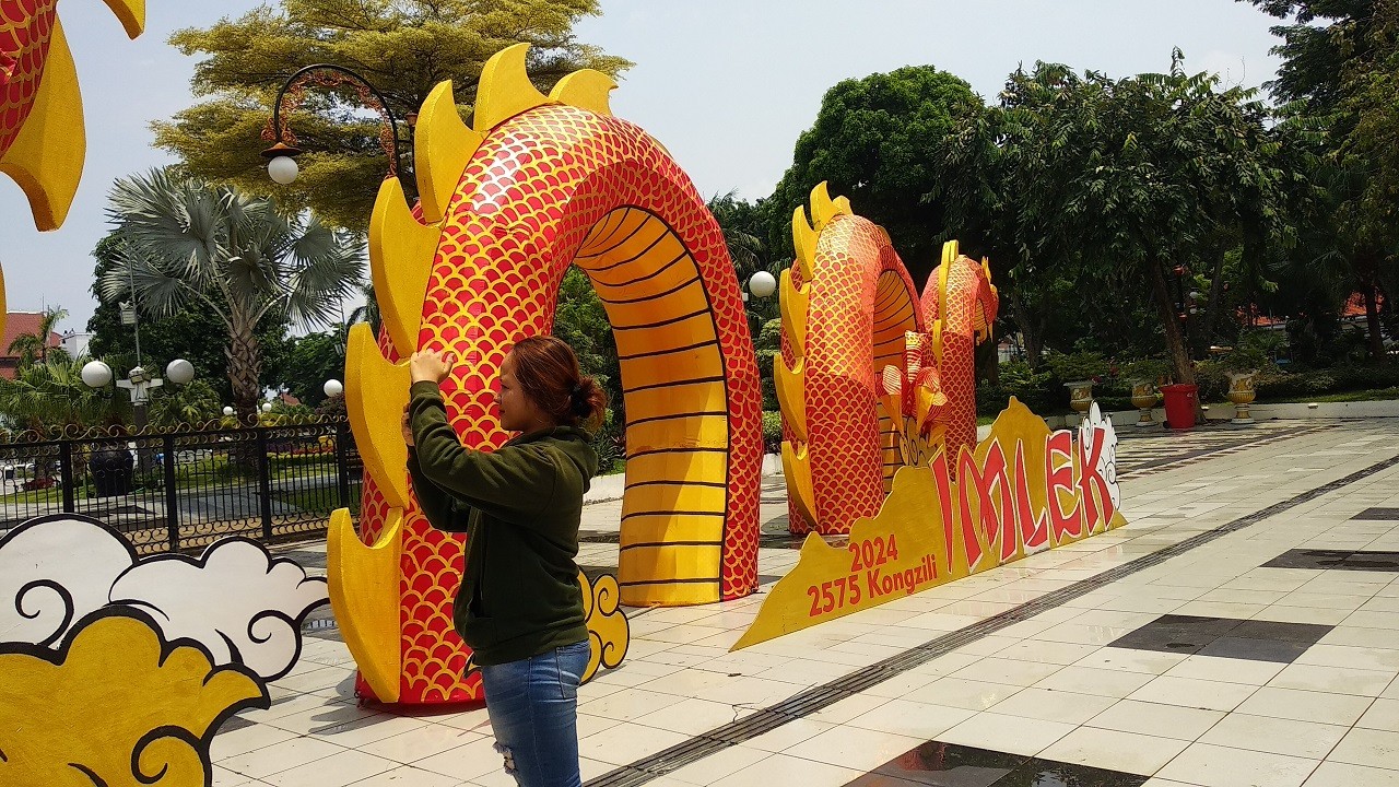 jatimnow.com- Pemerintah Kota (Pemkot) Surabaya menyiapkan beberapa hiasan untuk menyambut tahun baru Imlek. Ornamen tersebut dipasang di beberapa titik, seperti balai kota, Balai Pemuda, dan Kampung Pecinan Kya-kya.