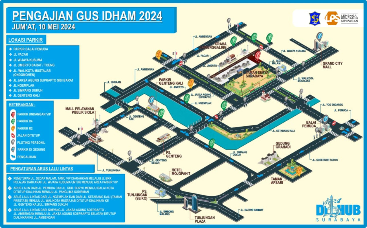 “Kami sampaikan permohonan maaf kepada masyarakat atau pengguna jalan raya yang akan terganggu dengan adanya kegiatan tersebut. Selama acara berlangsung, rekayasa lalu lintas di jalan sekitar Taman Suya akan diterapkan buka-tutup dengan melihat situasi," tutupnya.