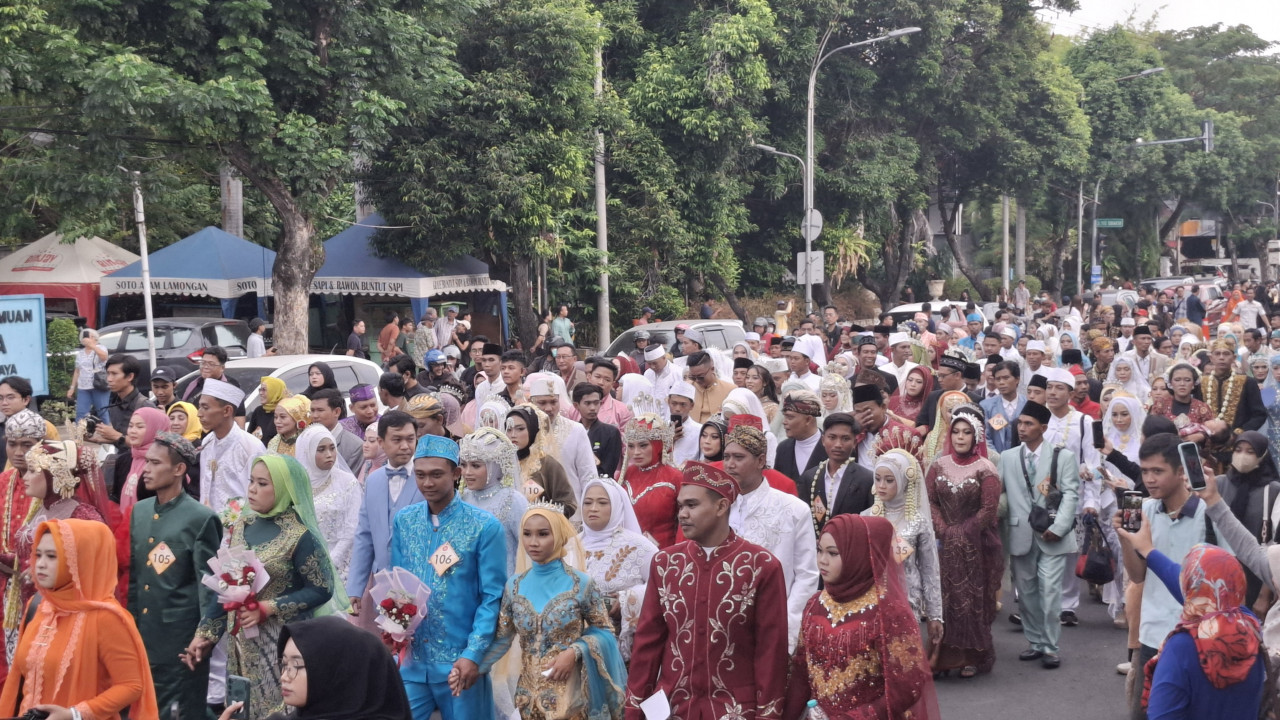 URL : https://jatimnow.com/baca-69574-foto-330-pengantin-nikah-massal-diarak-di-surabaya