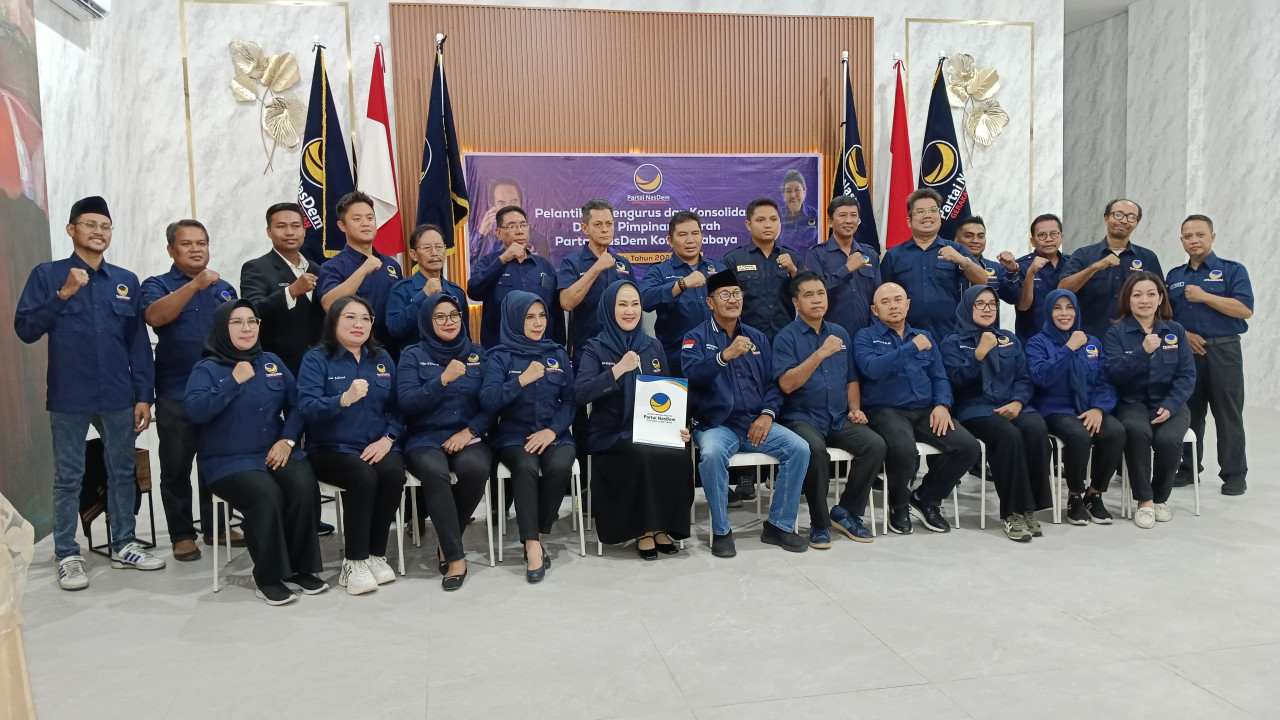 "Hasil dari koordinasi dan konsolidasi tersebut memberikan amanat kepada kader-kader terbaik DPD Partai NasDem Kota Surabaya, berdasarkan AD/ART Partai NasDem dengan dikeluarkannya Surat Keputusan Dewan Pimpinan Pusat Partai NasDem tanggal 11 Juni 2024 Nomor: 127-Kpts/DPP-NasDem/VI/2024," terang Ketua DPP NasDem Bidang UMKM itu.