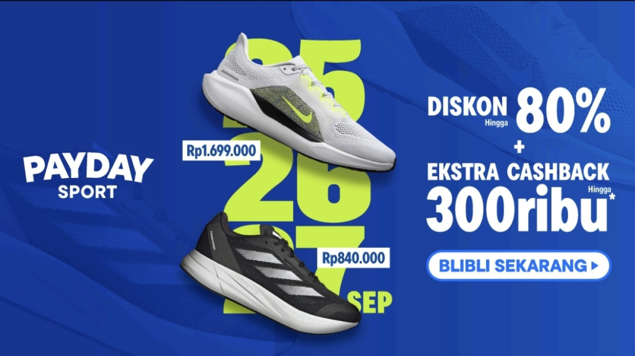 Beli sepatu 910 di Blibli bisa dapat promo menarik, salah satunya Nikmati diskon produk Sport di Blibli dengan diskon 80% dan ekstra cashback hingga Rp 300 Ribu! Jangan lewatkan kesempatan ini untuk mendapatkan sepatu lari berkualitas dengan harga terbaik!