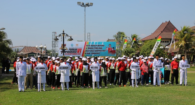 jatimnow.com – Bupati Ponorogo Ipong Muchlissoni membuka ajang Pekan Olahraga Kabupaten (PORKAB) Ponorogo ke VI di depan pendopo Pemkab Ponorogo, Selasa (25/9/2018). Ipong berharap ajang tahunan itu bisa melahirkan atlet-atlet berprestasi.