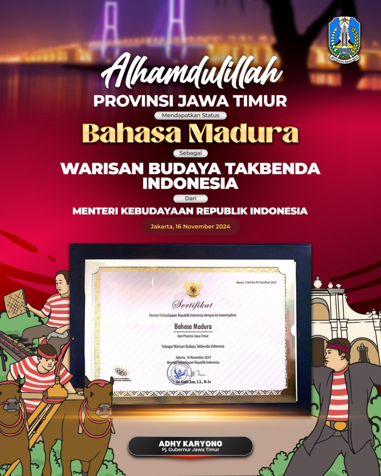 Pengakuan ini diterbitkan oleh Kementerian Kebudayaan Republik Indonesia dalam sertifikat yang diterima Pemprov Jawa Timur, yang diberikan secara simbolis oleh Menteri dan Wamen Kebudayaan RI.