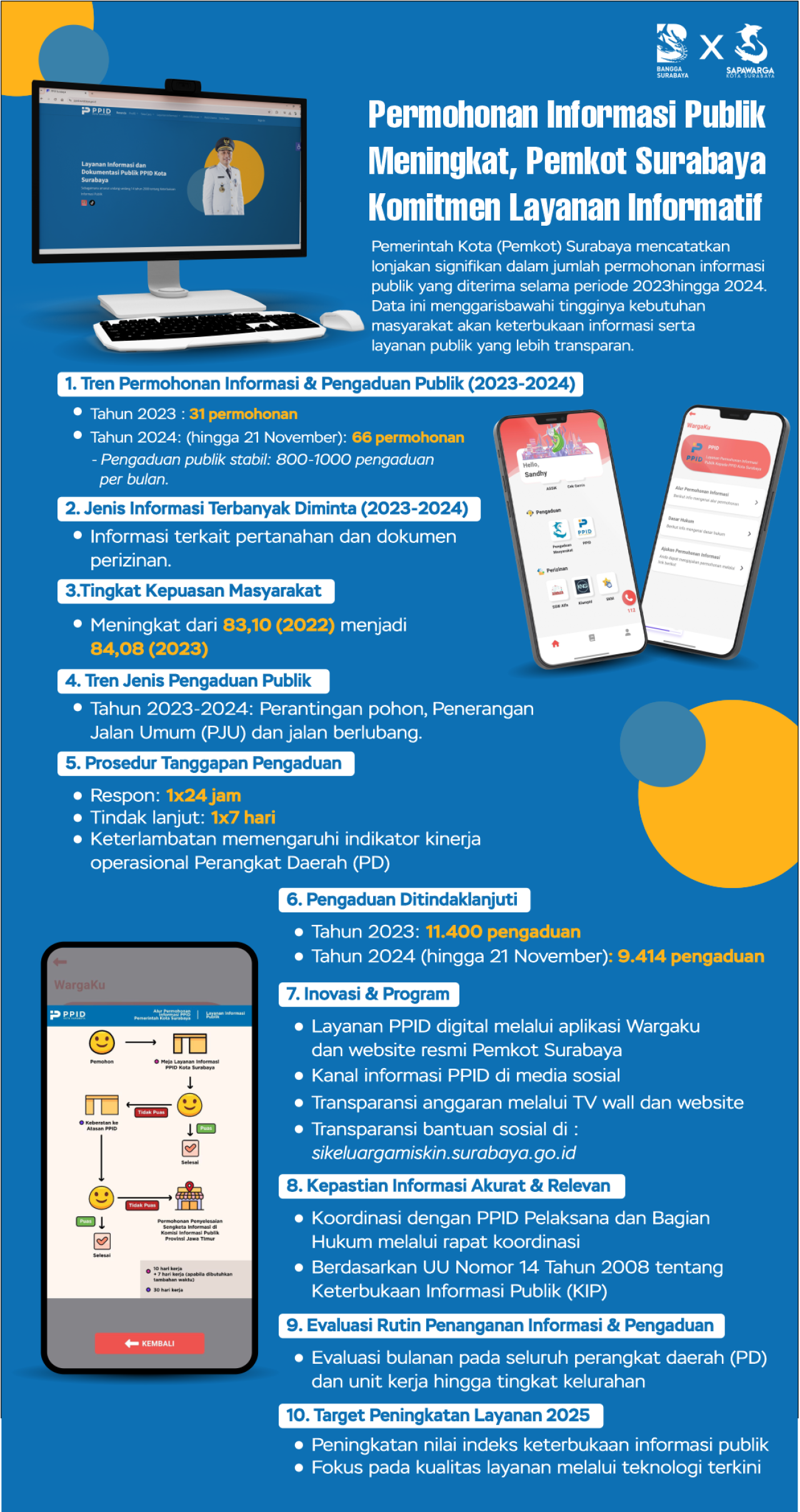 Wali Kota Surabaya, Eri Cahyadi mengatakan, bahwa peningkatan tersebut merupakan indikasi kuat bahwa warga semakin aktif dalam mencari informasi terkait pelayanan publik.
