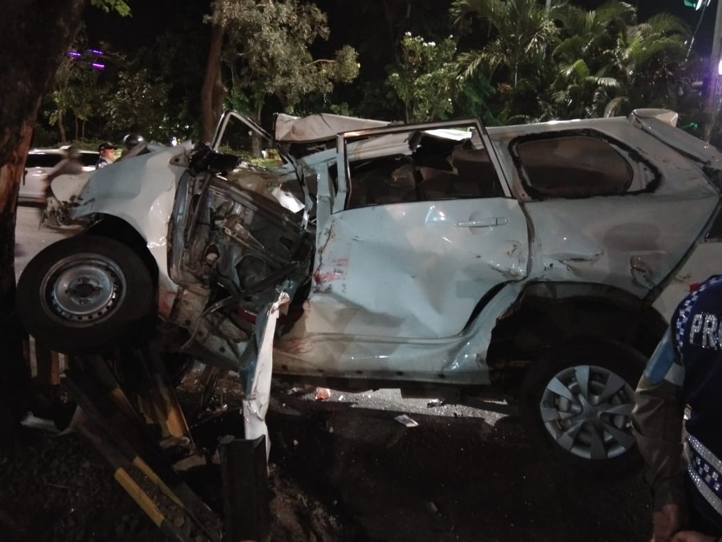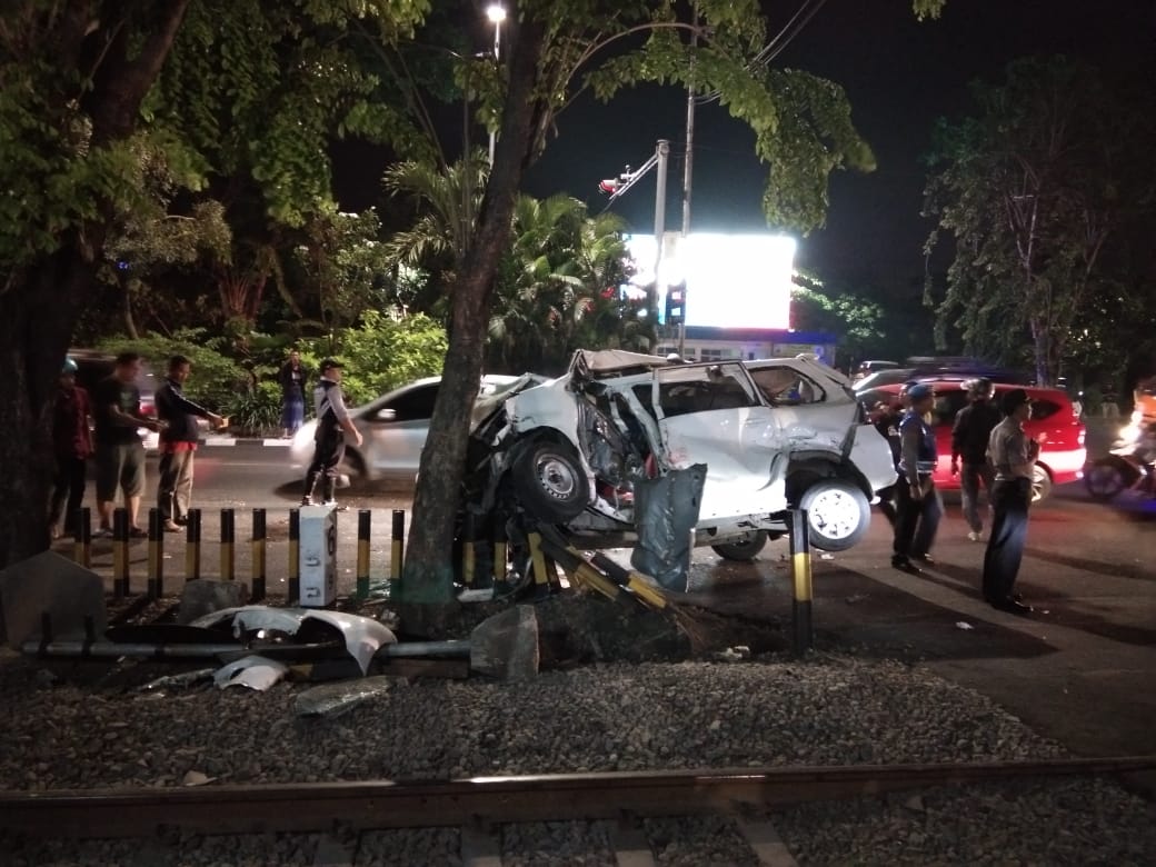 Selain mobil Avanza yang berisi orangtua dan anaknya, sebuah motor juga ikut teribat kecelakaan.cMobil yang rusak parah dievakuasi ke bahu Jalan Ahmad Yani.