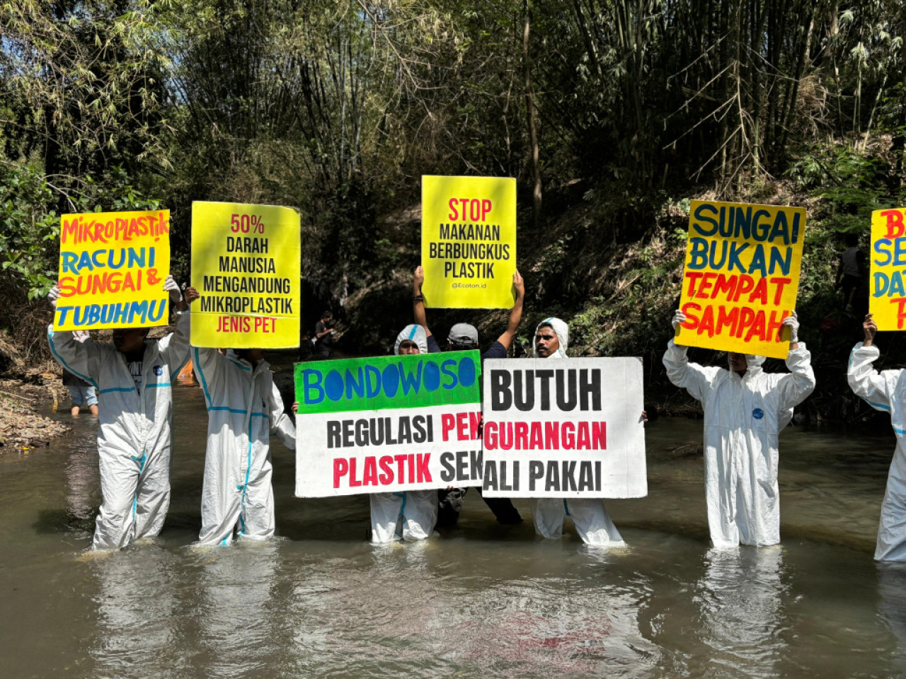 Kajian yang dilakukan Ecoton bersama Sarka Space menunjukkan bahwa udara dan air Sungai Selokambang telah terkontaminasi mikroplastik. .