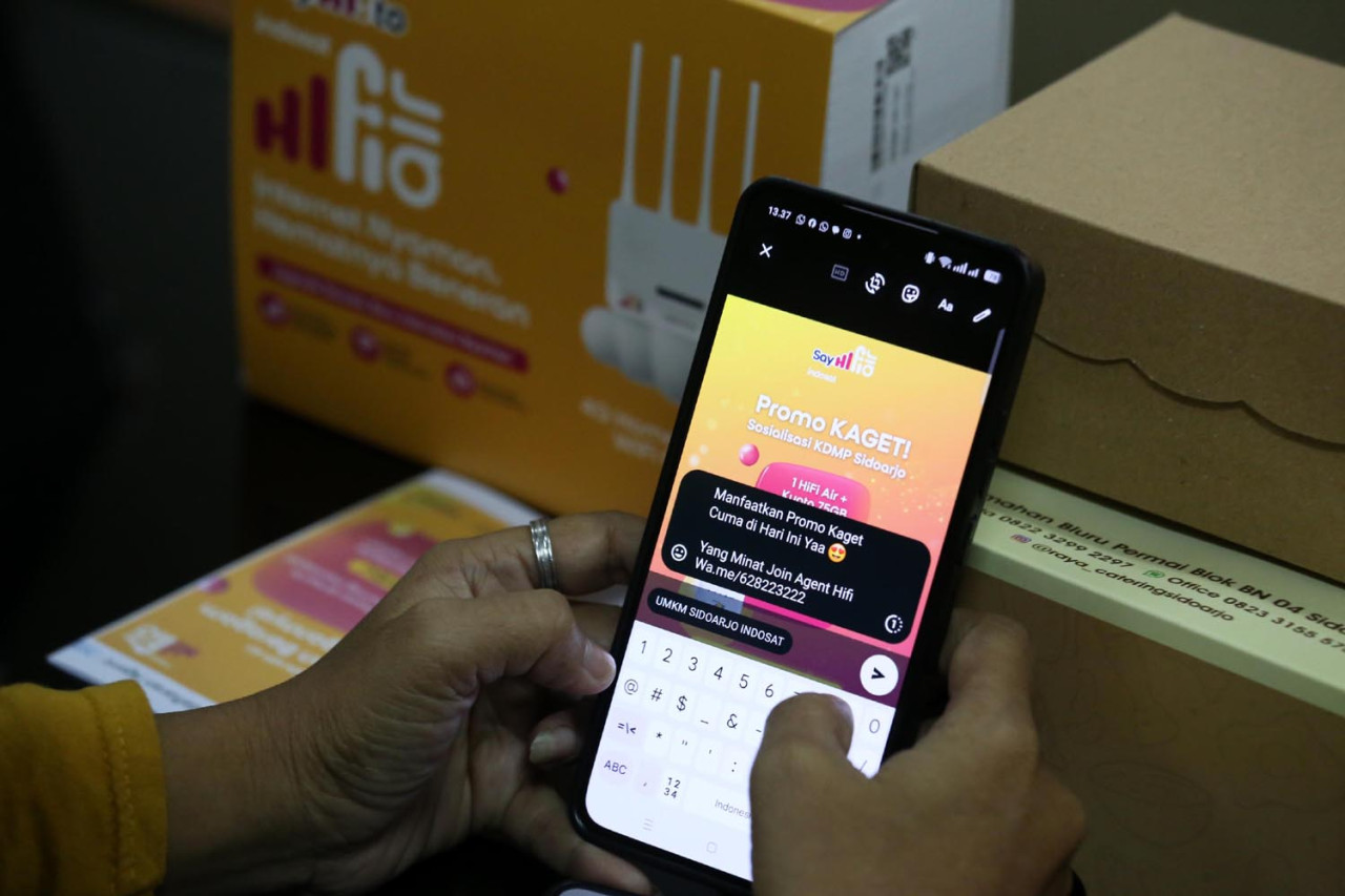 Selama pelatihan, peserta juga berkesempatan mencoba langsung produk unggulan Indosat yaitu HiFi Air 75GB, layanan konektivitas berkecepatan tinggi yang mendukung aktivitas digital para pelaku usaha.