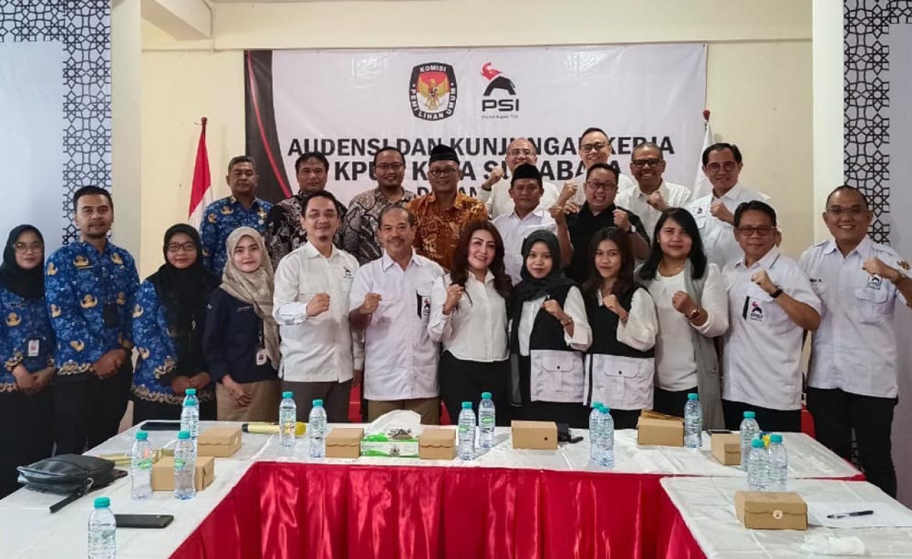 Masih di lokasi yang sama, DPD PSI Surabaya pada hari yang sama juga menerima kunjungan kerja dari Komisioner KPU Kota Surabaya.