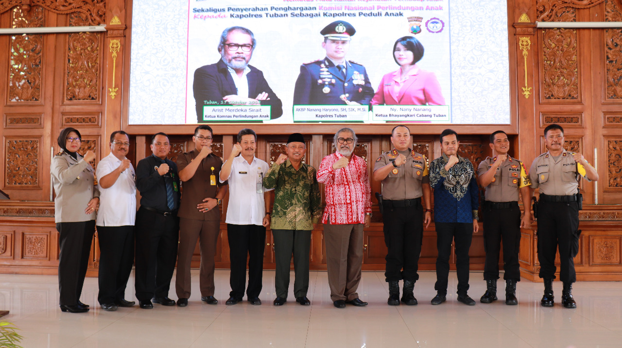 Ketua Komnas Perlindungan Anak Arist Merdeka Sirait pun, memberikan penghargaan kepada Kapolres Tuban AKBP Nanang Haryono, sebagai 'Kapolres Peduli Anak'.