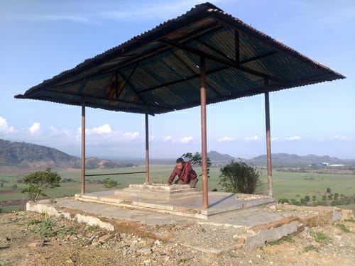 Seperti yang diceritakan Agus, di puncak gunung yang dilihat dari jauh seperti Piramida, itu terdapat makam dengan atap kubah dari seng. Makam ini diklaim sebagai makam salah satu orang yang membuka kawasan setempat, bernama Mbah Gimbal.