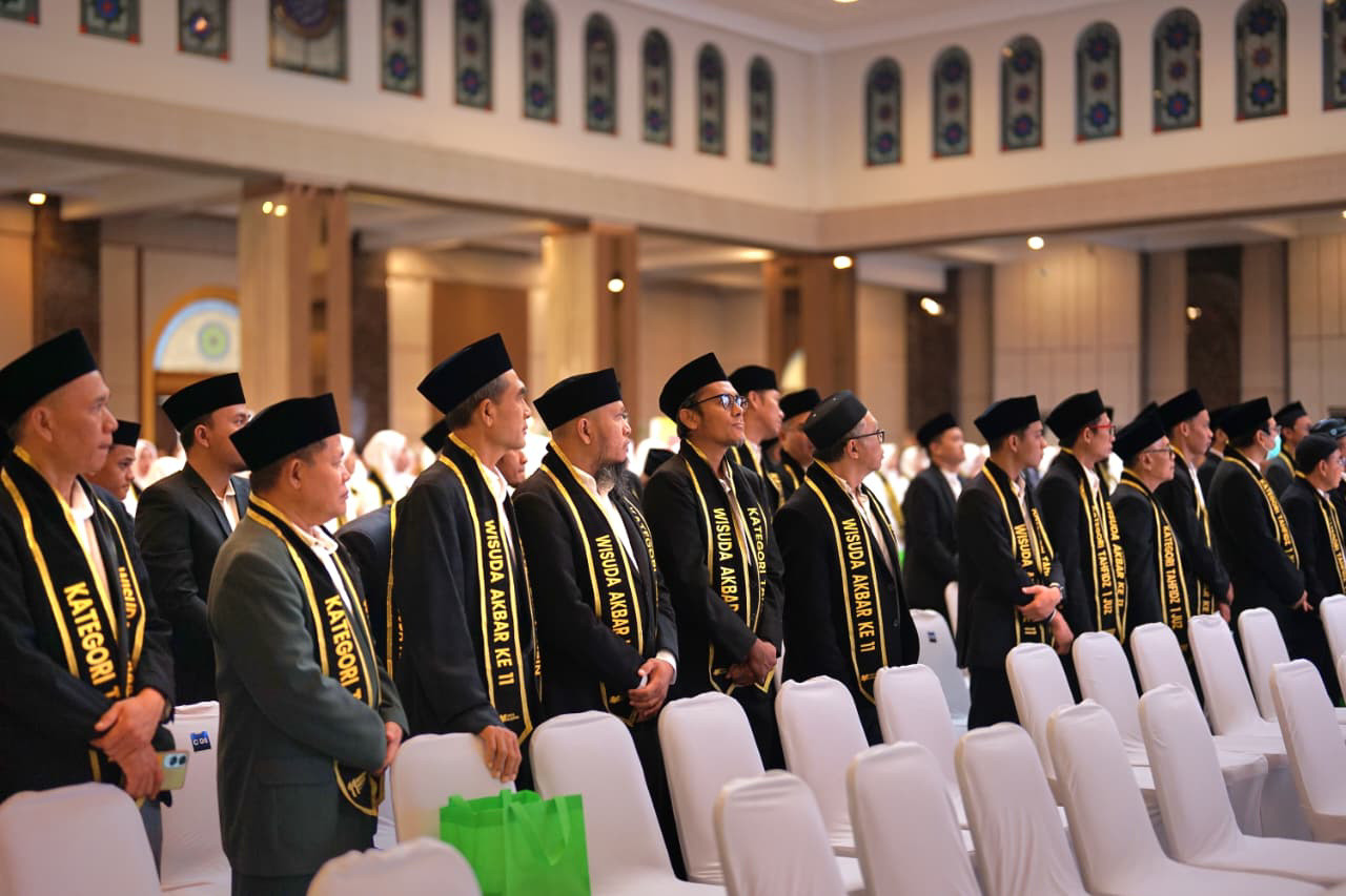 jatimnow.com - Suasana haru dan kebanggaan menyelimuti Gedung Al Marwah Masjid Nasional Al Akbar, Surabaya, pada Minggu (7/12/2025). Sebanyak 505 hafidz dan hafidzah dari berbagai daerah di Indonesia resmi dikukuhkan dalam Wisuda Akbar Griya Al-Qur’an ke-11.