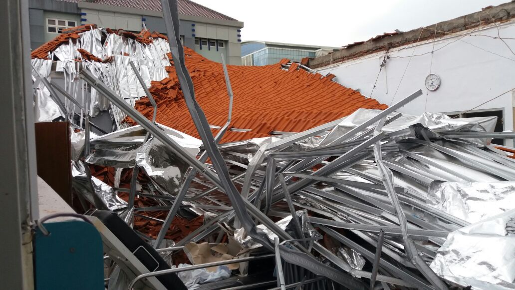 3. Puing-puing atap ambruk RSAL dr Ramelan Surabaya.