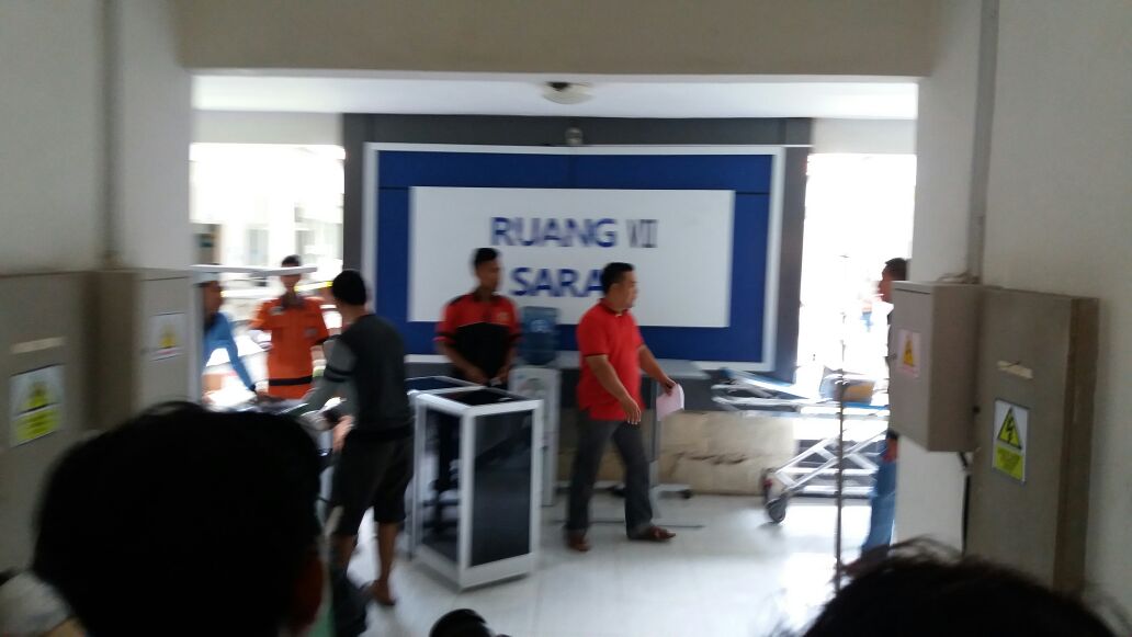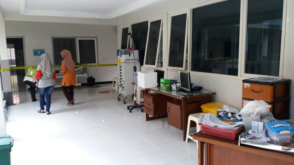 2. Meski telah dipasangi garis pembatas, para perawat dan petugas tetap berusaha menyelamatkan peralatan medis.